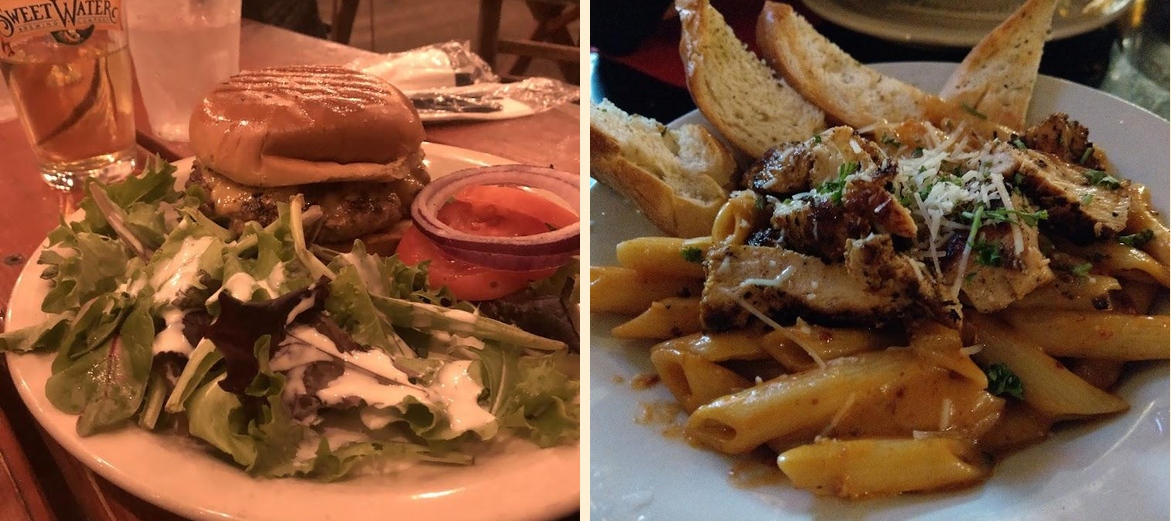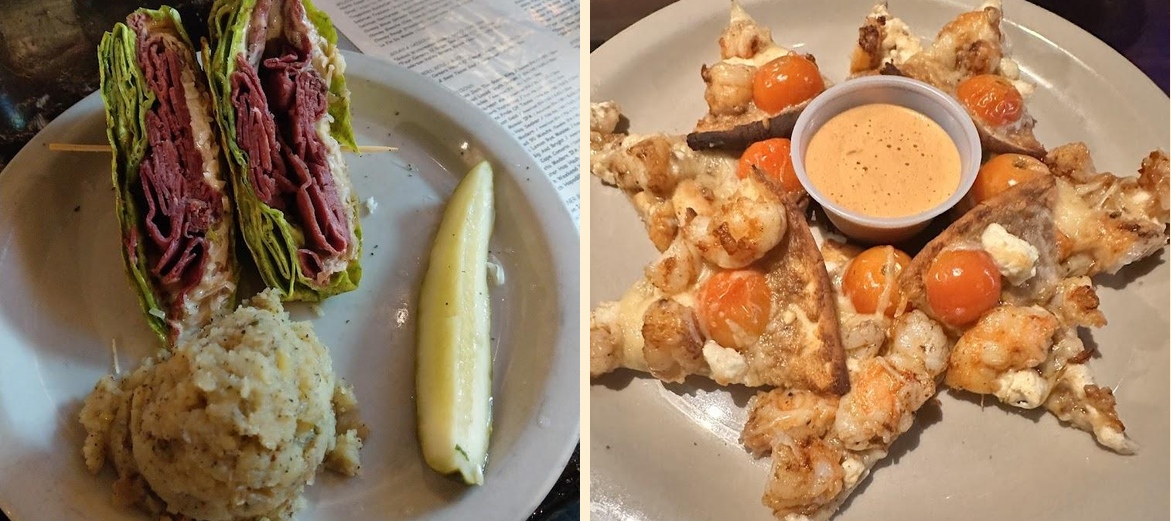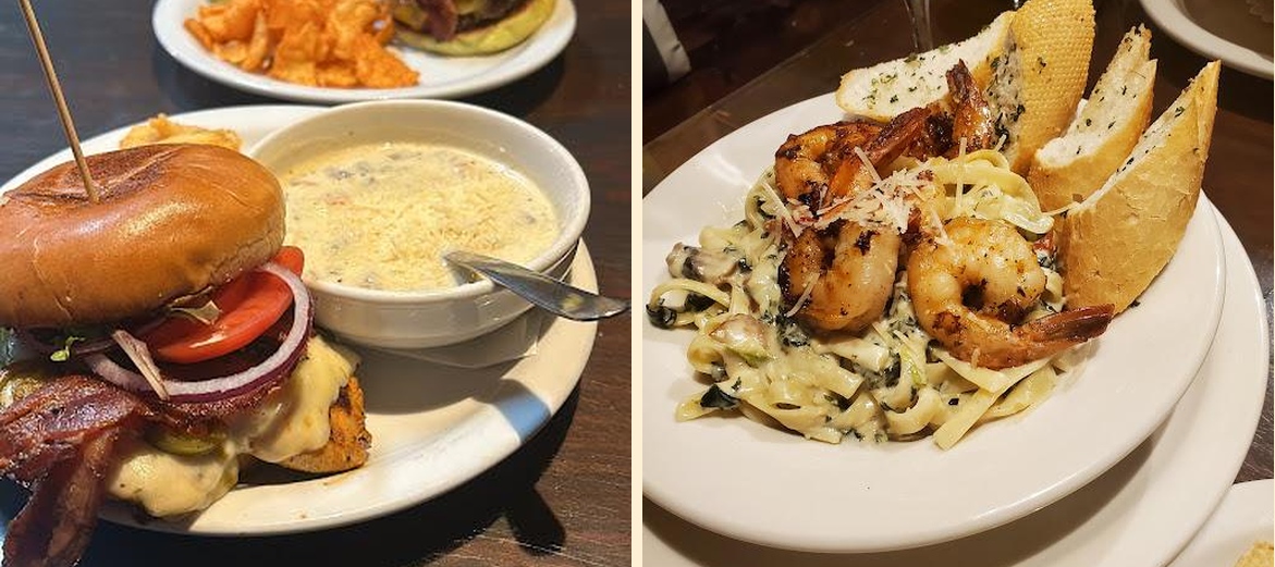 Must-try dishes include Marilyn Monroe's Spinach Dip and Vanderbilt's Black & Bleu burger. Don’t miss the tasty flatbreads and health-conscious platters.
